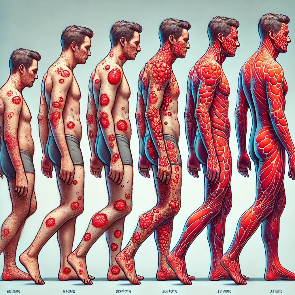 Псориаз — это хроническое заболевание, которое может прогрессировать, если не заниматься лечением. На любом этапе болезни важно начинать действовать. Ваше состояние может варьироваться от лёгкого до тяжёлого, но лечение всегда возможно.